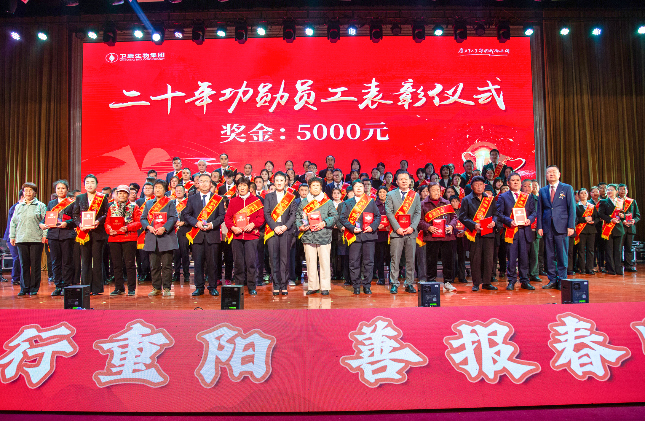 集團(tuán)監(jiān)事長王憲成見此場景,遇景生情,登臺(tái)分享了他的感觸。他說道:“十年深耕,十五年堅(jiān)守,二十年同行——每一段歲月都是一枚功勛獎(jiǎng)?wù)?,鐫刻著你們的奮斗,也承載著父母的奉獻(xiàn)。正是你們的風(fēng)雨同舟,才鑄就了衛(wèi)康的步步精彩。這份榮耀,屬于每一位員工,也屬于每一個(gè)支持他們的家庭?!?/span>